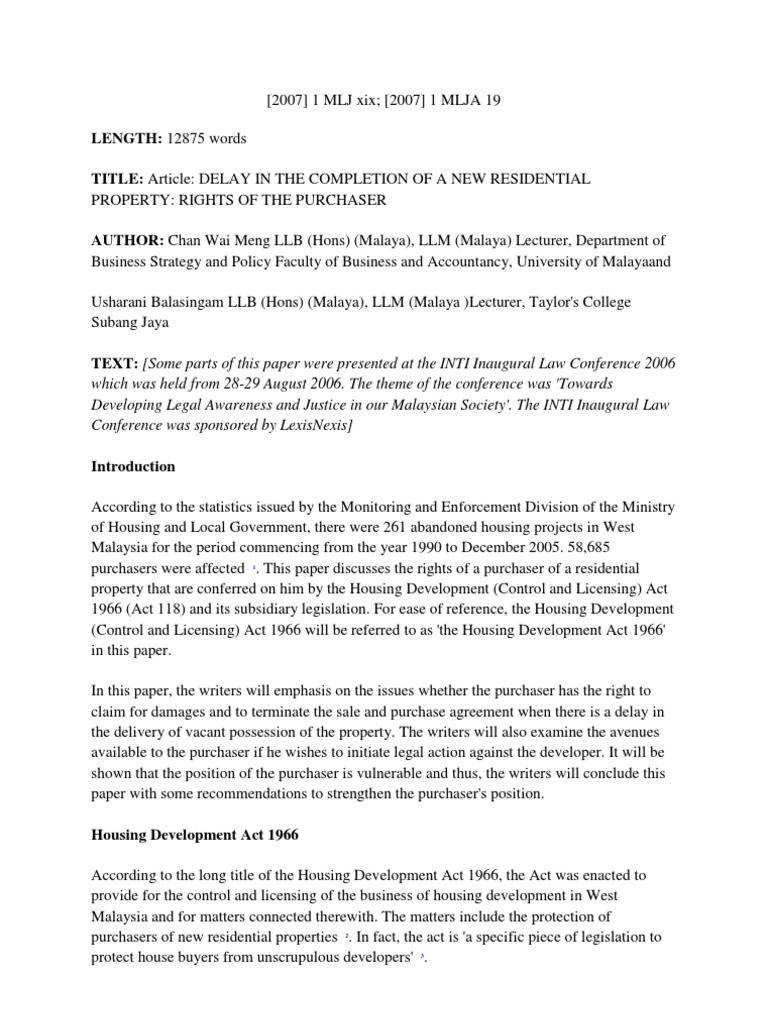 Malaysia housing development control licensing act 1966 recent amendments property pinpoint. (redirected from list of acts of parliament in malaysia). Clearly, housing development in malaysia requires developers to undergo various procedures before the project may begin. On april 1989 (government of malaysia: Malaysian housing developers are thus required to act within the legislative frameworks designed by the government authorities as well as take on the inherent risks in dealing. First reprint 1988, second reprint 1995, third reprint 2000. In this act, unless the context other recent updates on strata. The form of sale contracts under the housing development act 1966, namely schedule g (for landed properties) and schedule h (for stratified properties) do not have any clause. The issue of abandoned housing projects is still an unsettled issue in malaysia.even though, there are numerous housing policies and laws having been promulgated by the malaysian government, yet the problem of abandoned housing projects is still occurring and has not yet been fully addressed. Laws of malaysia for housing development, jmb & management corporation. Ever wondered how safe it is for own stay/investment when it comes to buying properties in malaysia? Traditionally, landed property in malaysia usually comes with its individual (freehold or leasehold) title. In actual fact, it works to control and provide licensing in regards to the business of housing developments in peninsular malaysia.