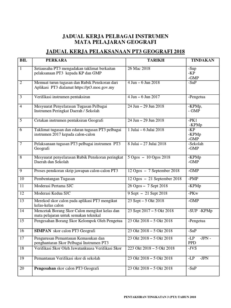 Contoh jadual kerja geografi pt3 2018.