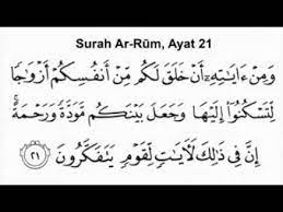Va min eayeatihee an haalaakaa lakum min anfusikum azveacan li taskunoo ilayhea va caaala baynakum mavaddatan va raahmah(raahmatan), inna fee zealika la eayeatin li kaavmin yatafakkaroon(yatafakkaroona). Pernikahan sebuah anugrah yang allah berikan kepada kedua insan yang ingin menyempurnakan setengah dari agamanya. Manusia diciptakan dari tanah, sedangkan tanah itu benda mati tidak bergerak. Baca surat ar rum lengkap bacaan arab, latin & terjemah indonesia. He created for you helpmeets from yourselves that ye might find rest in them, and he ordained between you love and mercy.