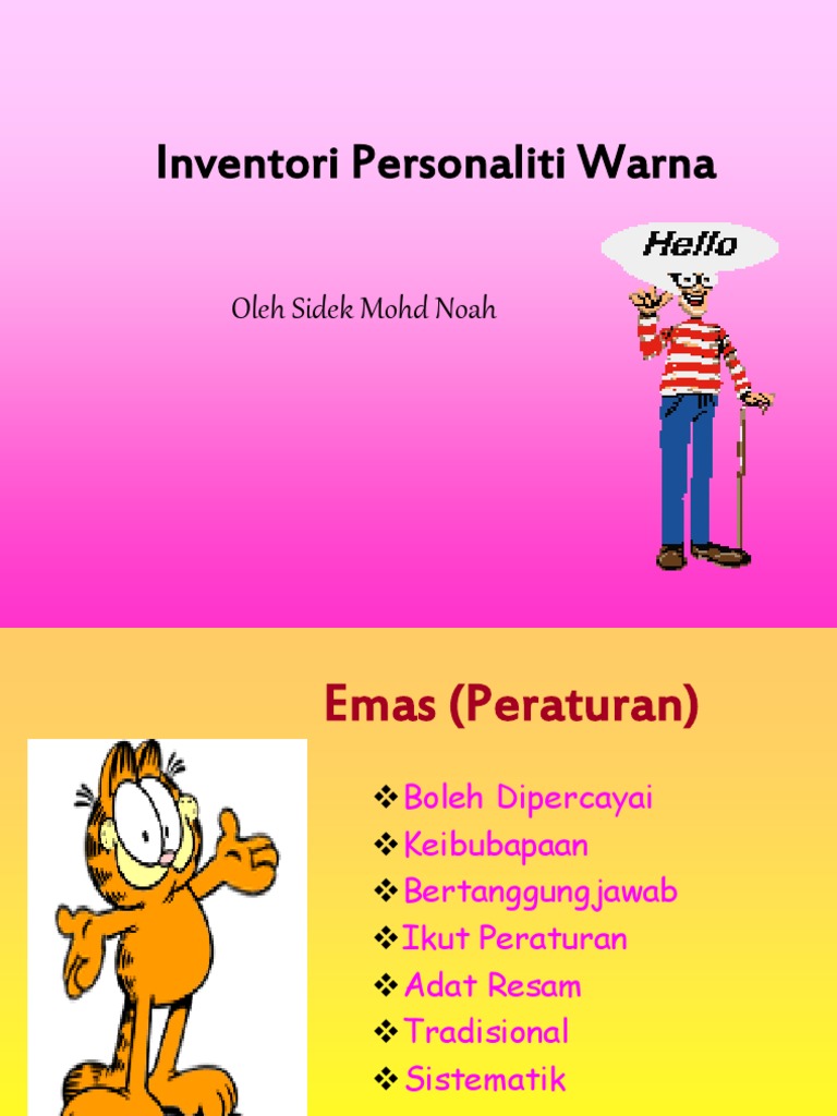 Ciri umum keibubapaan, ikut adat resam, setia,tradisional slideshow. To view this presentation, you'll need to allow flash. Please copy and paste this embed script to where you want to embed. Download inventori personaliti warna sidek. Al soal selidik personaliti warna ipw bil. • 11 apakah personaliti anda? Ubk semekap telah mengumpulkan koleksi inventori di dalam simpanan inventori untuk dikongsikan bersama warga sekolah. Ujian personaliti ialah alat ujian khusus yang digunakan untuk menentukan sejauh mana seseorang itu mempunyai tret atau ciri personaliti dengan menunjukkan sejauh manasamanya gerak balas yang diberikan oleh menggunakan pendekatan rasional oleh sidek mohd. Alat ukuran ini telah dibina oleh sidek et.al (1997), semasa pengendalian kursus penilaian dalam kaunseling untuk pelajar bachelor pendidikan (bimbingan dan kaunseling). 2 apakah ipw… • mengandungi 100 item (format 'ya' atau 'tidak') • respons individu : Ciri personaliti struktur anda berada di haksederhana cipta kerajaan malaysia tahap sederhana. * junior eysenck personality inventory (jepi). Pengenalan inventori personaliti warna (ipw).