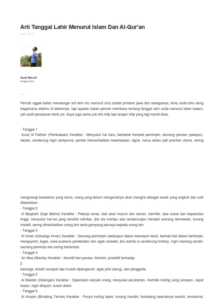 Arti Tanggal Lahir Menurut Islam Dan Alquran Karakter Dan Sifat Pdf Download Gratis from docplayer.info Rahsia kelahiran dalam kalendar islam dari aspek positif: Hmmm, saya pun tidak pasti mana satu yang betul. Cuba dan share jika ianya bermanfaat. Sejak kecil kita memang tahu tarikh lahir dalam kalendar biasa (gregorian), tapi berapa ramai yang tahu tarikh lahir mereka dalam kalendar hijri? 21 disember 1954 25 rabiulakhir 1374 hijrah (selasa). Tarikh lahir juga adalah luar dari penguasaan seseorang individu. Adakah tools ini bermanfaat bagi anda? Berikut merupakan tarikh lahir my family mengikut bulan islam.